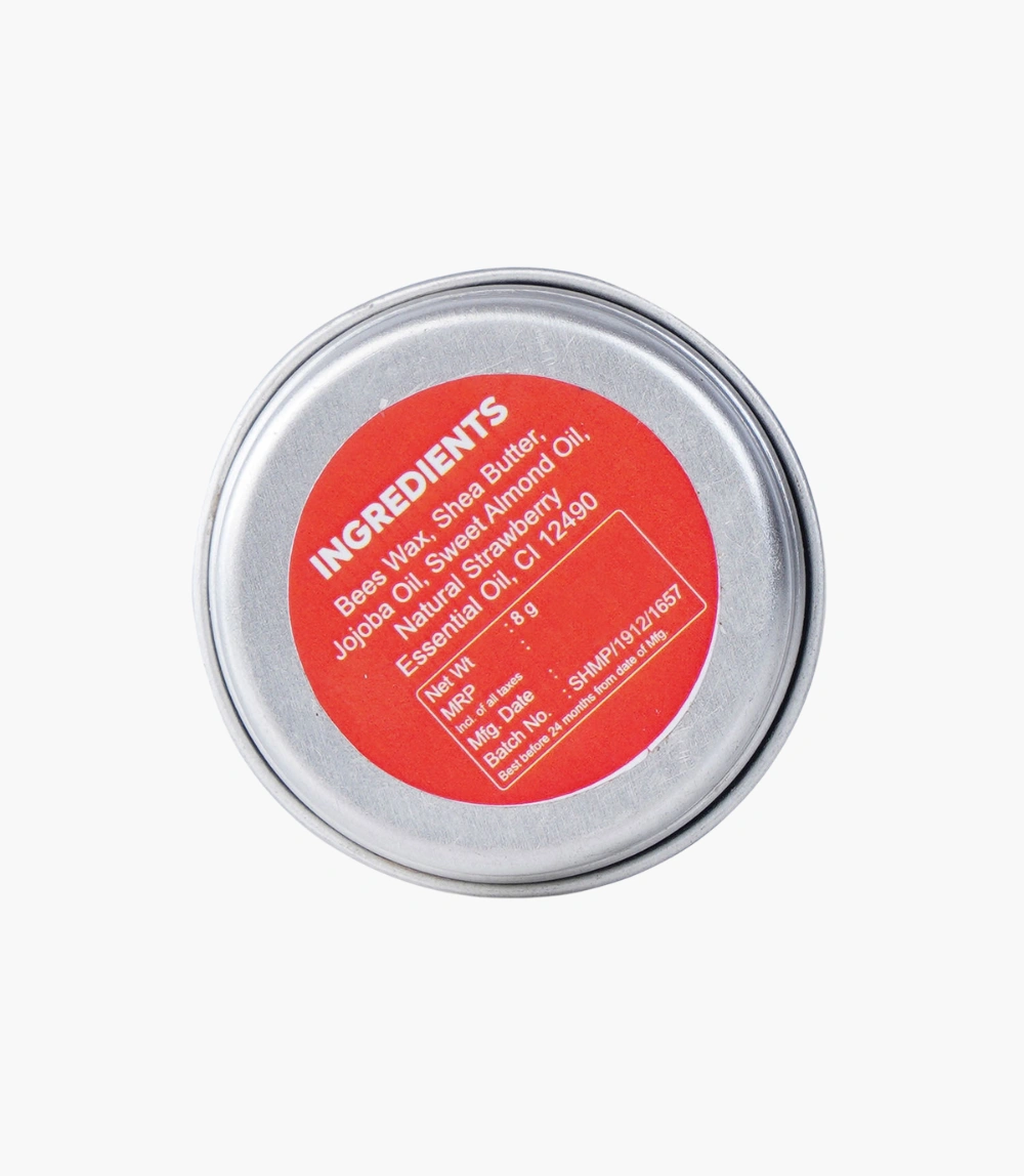 A nourishing strawberry lip balm that hydrates, protects, and keeps lips soft, smooth, and kissable.